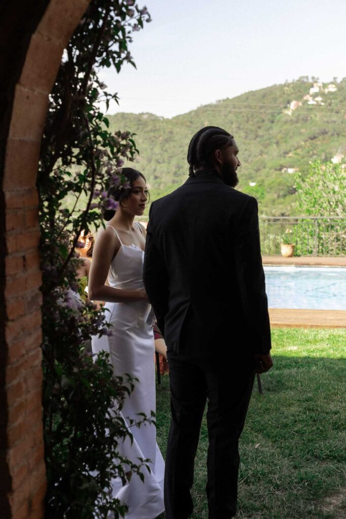 Mercedes and Jay’s destination wedding unfolded at the beautiful modernist venue of Can Borrell in Castellar del Vallès, Spain. This American couple fell in love with Barcelona’s charm and chose this stunning Catalonian setting for their intimate wedding celebration. Just 40 minutes from the vibrant city center, Can Borrell offered them the perfect blend of accessibility and tranquil Mediterranean beauty for their Spain destination wedding.